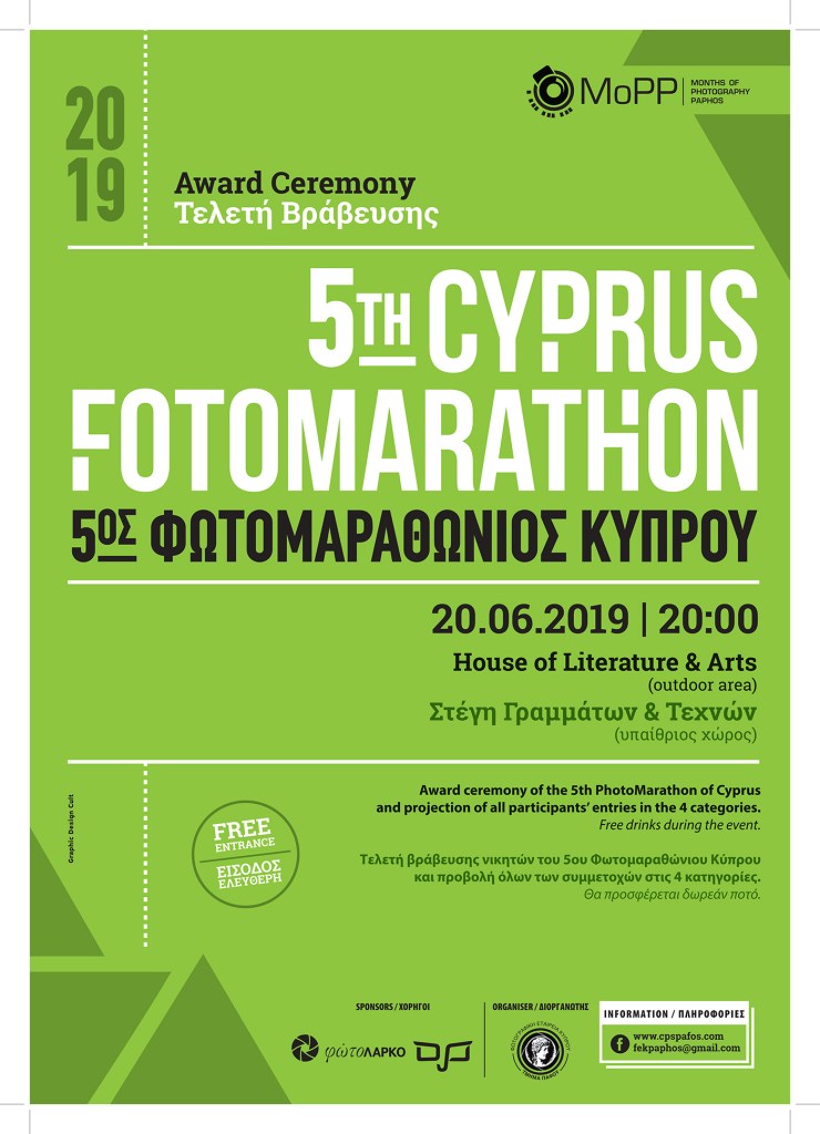 Awards will be submitted to the winners at the event on Thursday 20th June 2019 at the Open Area of the House of Arts and Literature – 8:00p.m. In the event all the photographs that participated in each category will be presented. Free admission to everyone. Congratulations to all the winners and participants. We would like to thank our Jury Committee: Dr. Stelios Sofocli, mr. Giorgos Kotsonis and Dr. Giorgos Giorgis