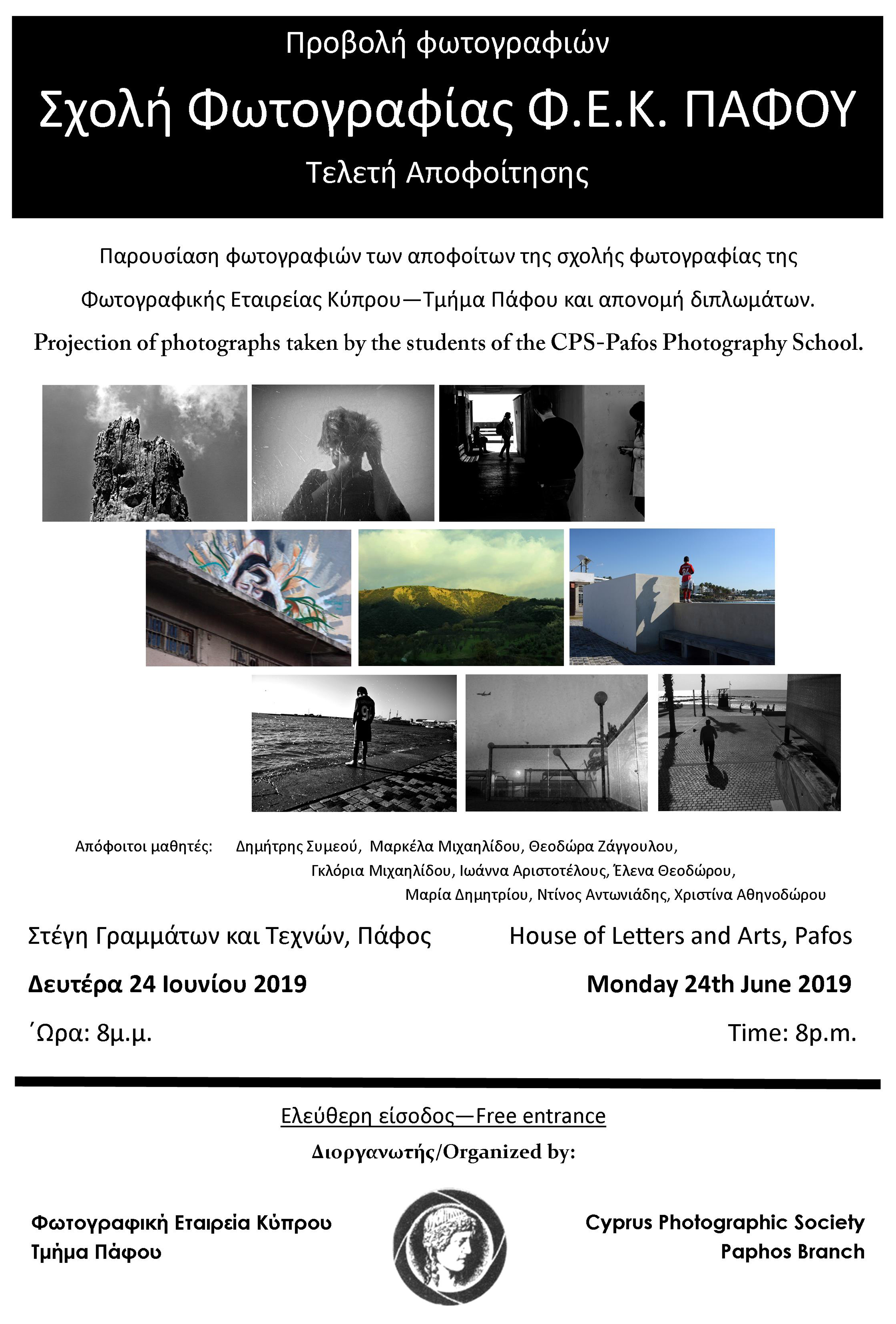 We invite you at the graduation ceremony of the CPS-Pafos Branch Photography School for 2019. During the event we will project selected work of each student.