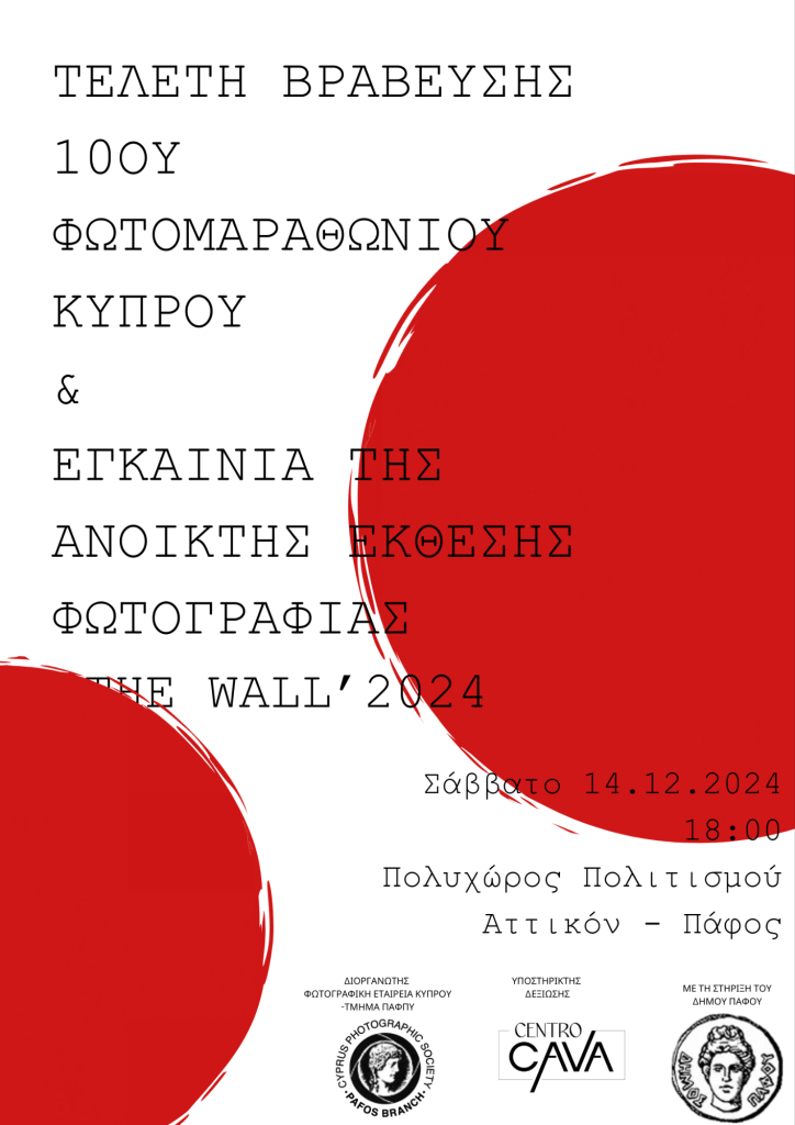ΤΕΛΕΤΗ ΒΡΑΒΕΥΣΗΣ 10ΟΥ ΦΩΤΟΜΑΡΑΘΩΝΙΟΥ ΚΥΠΡΟΥ 0 December 1, 2024December 3, 2024 Written by simcharalambous & ΕΓΚΑΙΝΙΑ ΤΗΣ ΑΝΟΙΚΤΗΣ ΕΚΘΕΣΗΣ ΦΩΤΟΓΡΑΦΙΑΣ ‘ΤΗΕ WALL’2024 Share this: Click to share on X (Opens in new window) X Click to share on Facebook (Opens in new window) Facebook Like Loading...