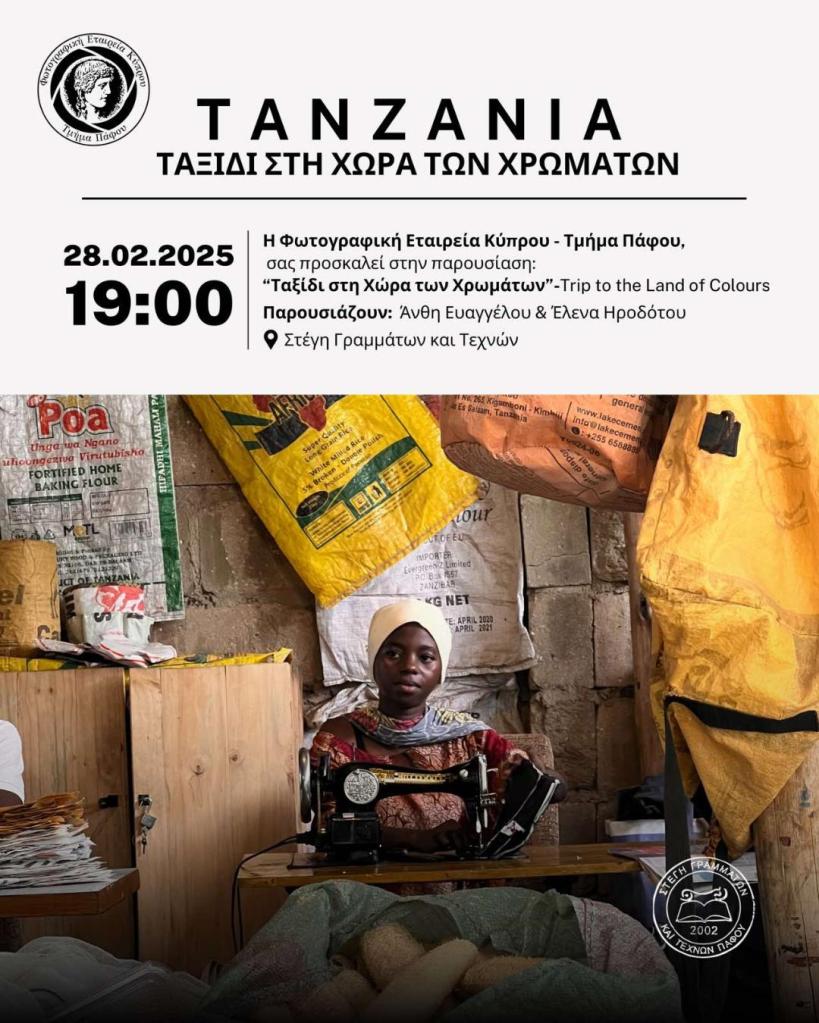 ΠΑΡΟΥΣΙΑΣΗ – TANZANIA ΤΑΞΙΔΙ ΣΤΗ ΧΩΡΑ ΤΩΝ ΧΡΩΜΑΤΩΝ 28/02/2025 0 February 18, 2025 Written by simcharalambous Share this: Click to share on X (Opens in new window) X Click to share on Facebook (Opens in new window) Facebook Like Loading...