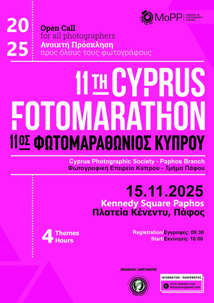 H Φωτογραφική Εταιρεία Κύπρου – Τμήμα Πάφου διοργανώνει τον 11ο Φωτομαραθώνιο Κύπρου το Σάββατο 15 Νοεμβρίου 2025 και καλεί το φωτογραφικό κοινό για συμμετοχή