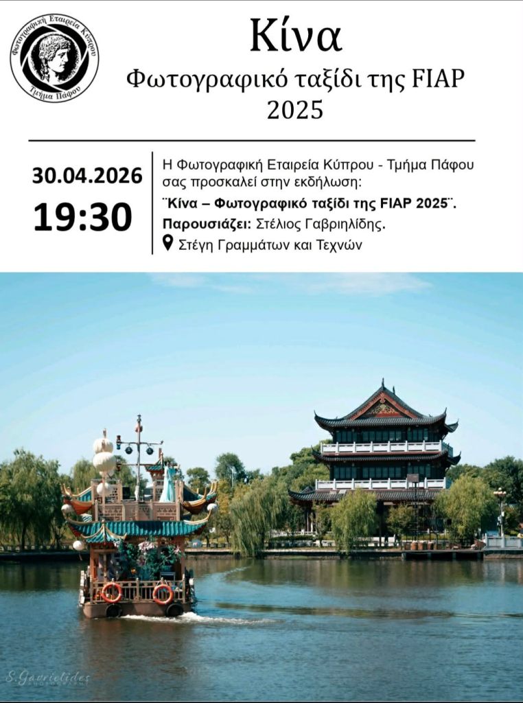 Κίνα – Φωτογραφικό Ταξίδι της FIAP 2025 από τον Στέλιο Γαβριηλίδη 0 April 28, 2026 Written by simcharalambous Share this: Share on X (Opens in new window) X Share on Facebook (Opens in new window) Facebook Like Loading...